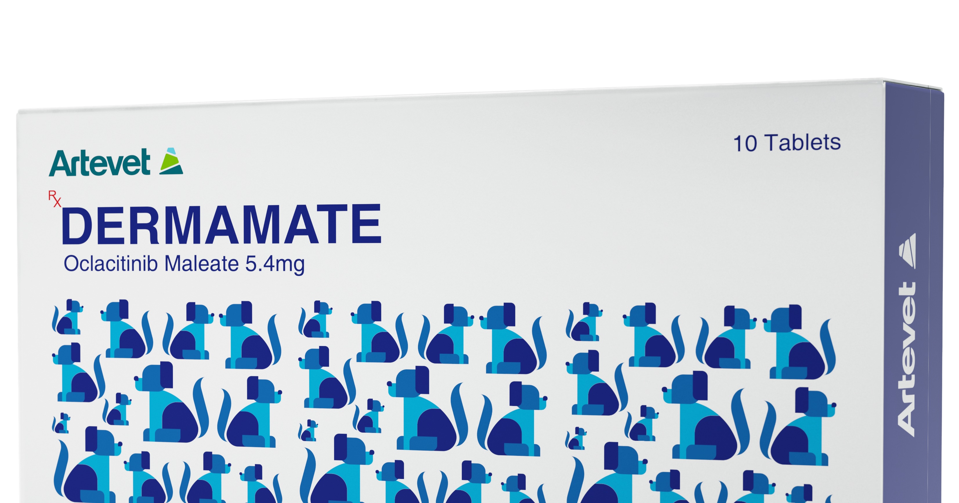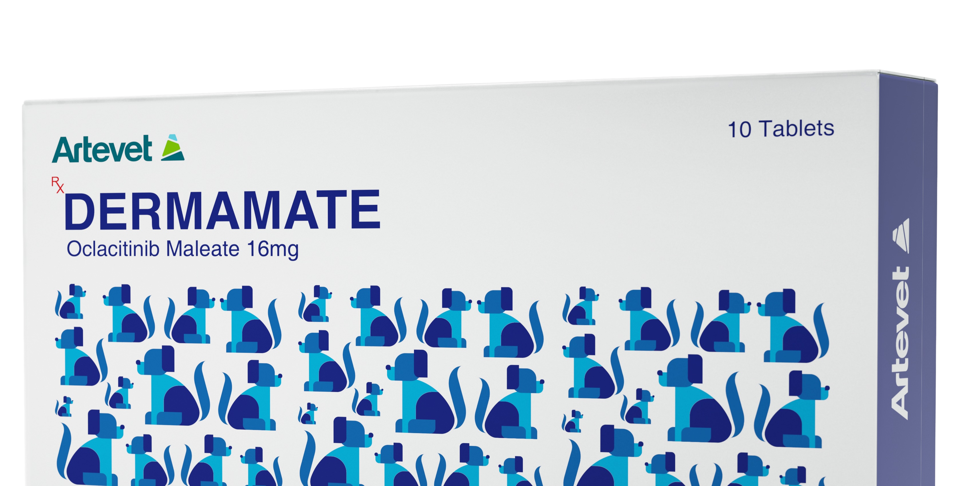 Dermamate’s active is Oclacitinib maleate which is a Janus Kinase (JAK) inhibitor.
