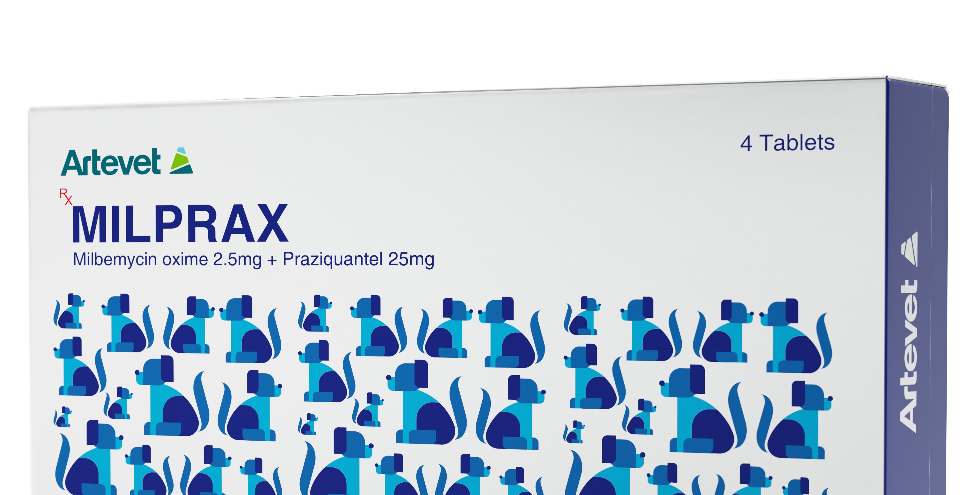 Milprax comprises of Milbemycin oxime and Praziquantel which are active against mites, larval and adult stages of nematodes, larvae of Dirofilaria immitis, cestodes and trematodes.