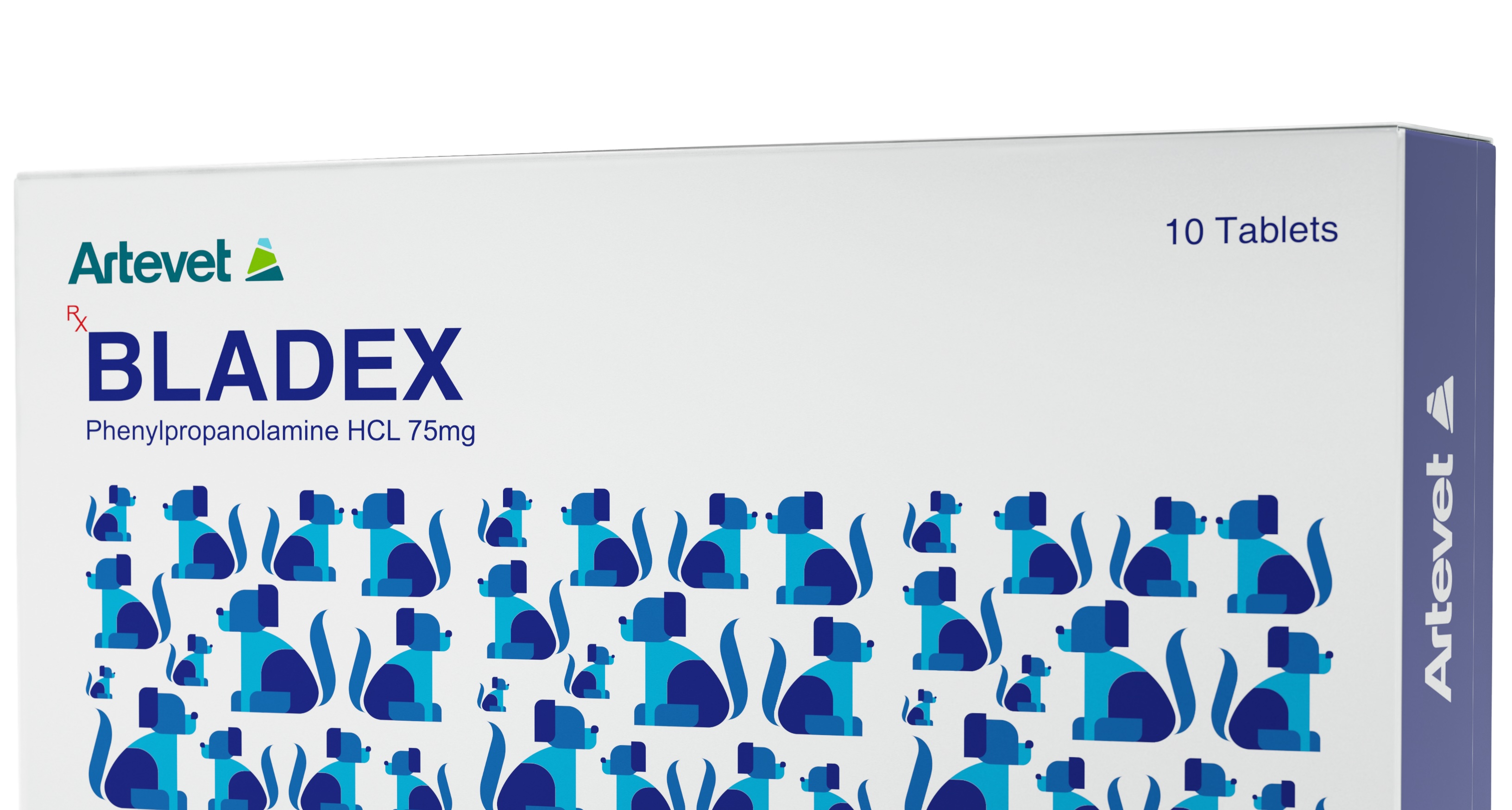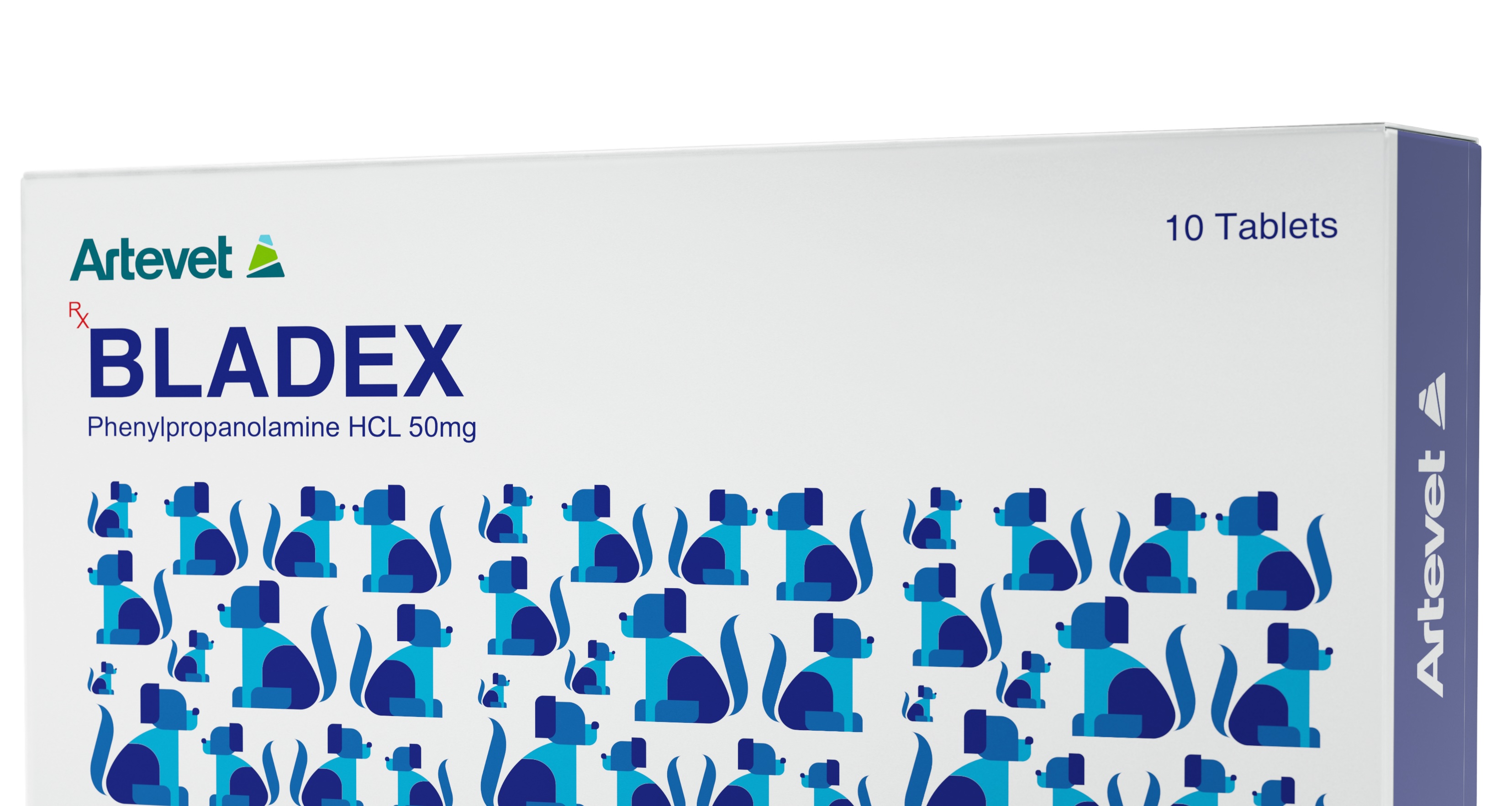 Bladex’s active ingredient is Phenylpropanolamine HCL. It is an a-adrenergic agent which increases the urethral tone.